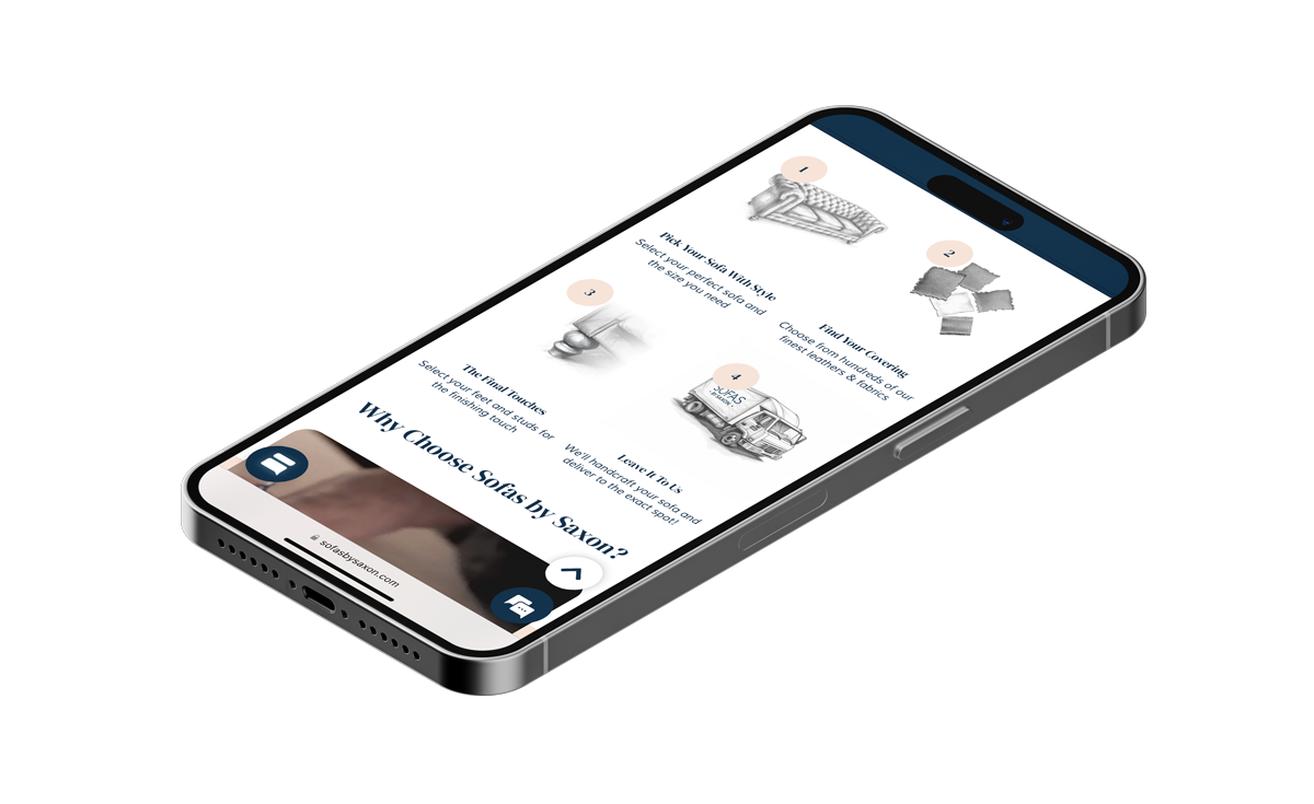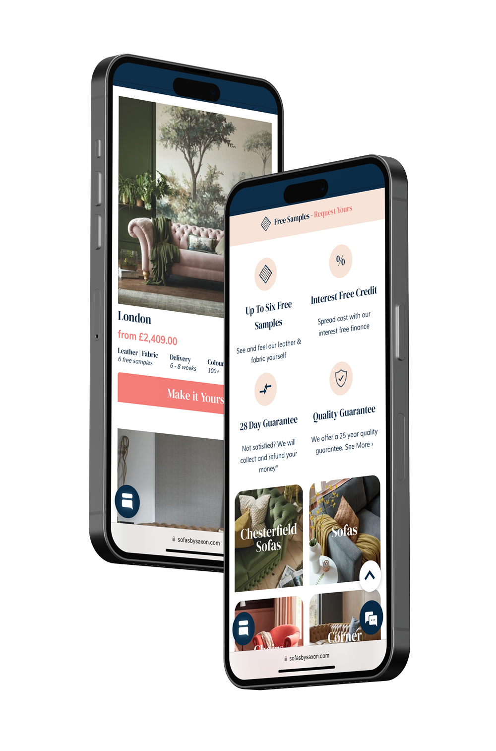With our research showing that the majority of Sofas by Saxon’s customers now place orders via handheld devices, we took a mobile first approach when crafting the new store, improving UX and aesthetics to increase conversions and revenue. The bespoke design also reflects the retailer’s latest branding, creating consistency across all of its online and offline customer touchpoints.